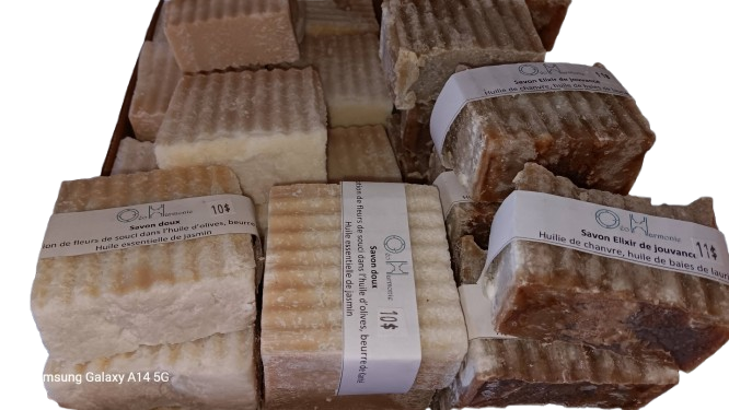 2. 𝗦𝗮𝘃𝗼𝗻 𝗧𝗿𝗮𝗻𝗾𝘂𝗶𝗹𝗹𝗶𝘁𝗲́ - au beurre de Karité, au maceét de soucis dans l'huile d'olives et aux fleurs de lavande, avec de l'HE de Lavande - 10$